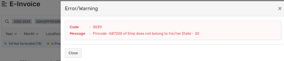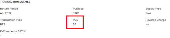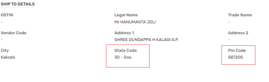 Here, in the above image, the transaction details for POS is 30 which is GOA. However, in the below image state code which is mentioned does not match with the Pincode.