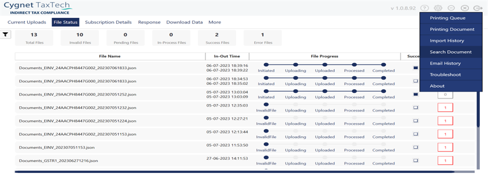 status of EINV/EWB whether its generated or not. Status files will be created only for generation cases.