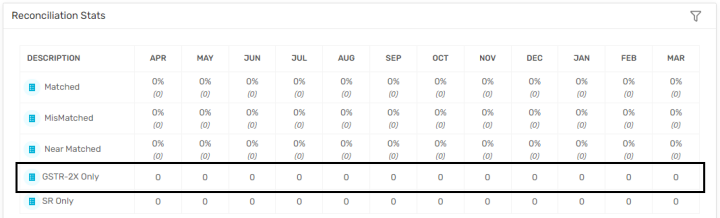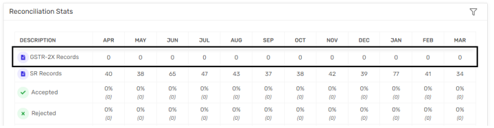 If there not any Matched and Matched by Tolerance records between SR and GSTR-2X then 0 would be displayed.