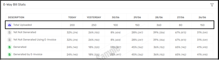 So, count of all the e-way bill records which are uploaded in last 6 days including today will be displayed here.