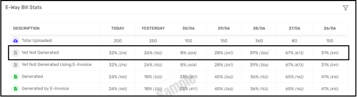 So, count of E-way bill records which is not yet generated in last 6 days will be displayed here with respective date.